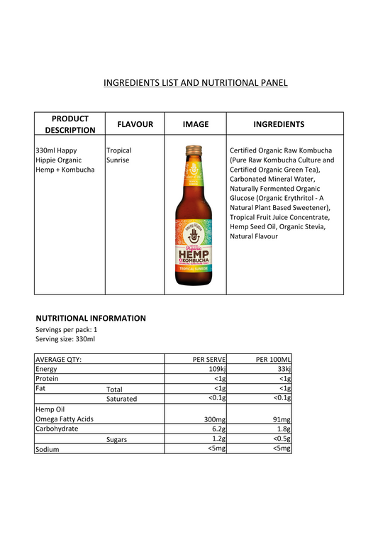 Tropical Sunrise Hemp + Kombucha - 12 x 330ml bottles