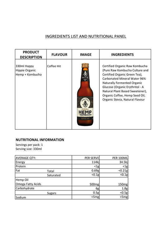 Coffee Hit Hemp + Kombucha - 12 x 330ml bottles